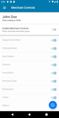 When the card is ?on,? transactions are allowed in accordance with your usage settings. When the card is ?off,? no purchase or withdrawals are approved until the card is subsequently turned back to ?on?. This control can be used to disable a lost or stolen card, prevent fraudulent activity, or protect your card when traveling.