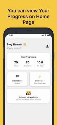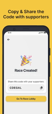 - Create, Choose & Schedule the type of race - View Realtime stats, supporters and messages - Copy & Share the Code with supporters - You can view Your Progress on Home Page - View and manage your details on your profile.