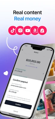 • Instant payment after content approval: get your earnings right away so you don't have to hunt down late payments anymore.