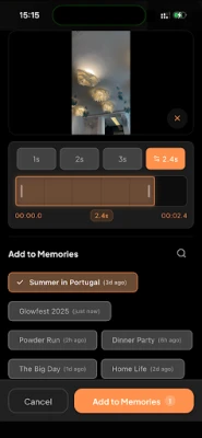 Clips: Record short videos and add them to as many memories as you wish