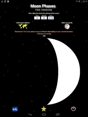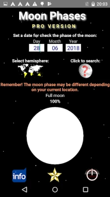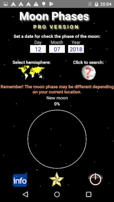 Set a date (day, month, year) and then find out what the phase of the moon will be.