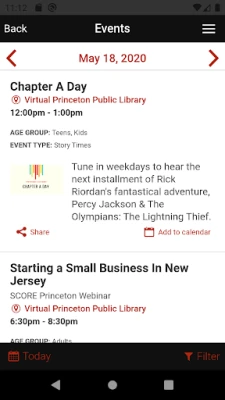 Events: Get information about the library, upcoming events & programs, and add reminders.