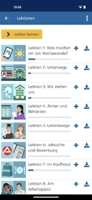 Features - 12 lessons - A range of exercises - Practise reading, writing, listening and speaking - Menu navigation and usage instructions available in 20 languages - Free - Use it offline - Recognised by the BAMF as a teaching aid for courses