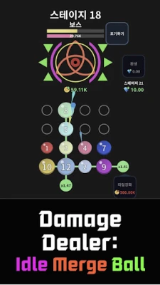 "Damage Dealer: Idle Merge Ball" is an engaging idle-style game where you progress through stages by defeating monsters. The main goal is to place balls with numbers written on tiles, combine them, and move on to higher stages.