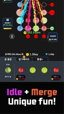 "Damage Dealer: Idle Merge Ball" is a game that requires participation and selective thinking beyond simply being idle. Combine balls to create more powerful damage and strengthen tiles to defeat monsters. By watching advertisements for additional rewards and utilizing various elements within the game, you can smoothly advance through the stages.