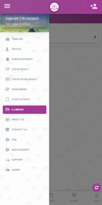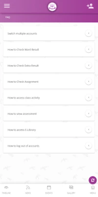 Timeline for parents: This timeline contains at a glance information received from school such as Assignment Notification, Assessments Updates, Gallery picture, and recent posts from the school as well as feed from the school Facebook feed.
