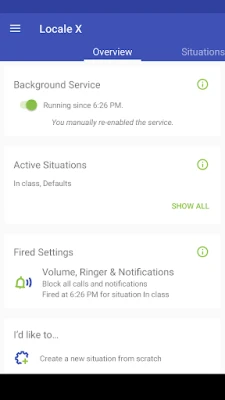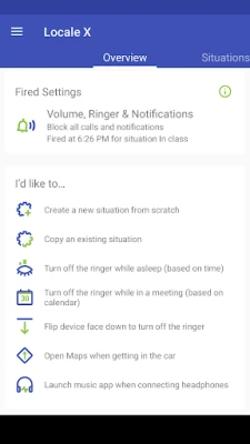 Locale manages more than your ringer. Along with built-in conditions and built-in settings, Locale expands with an advanced plug-in architecture. Hundreds of plug-ins for Locale are available on Google Play.