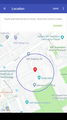 Configuring is simple—it just works! To create a geofence location, drag and drop the pin on the map, resize the radius using your finger, and Locale does the rest.