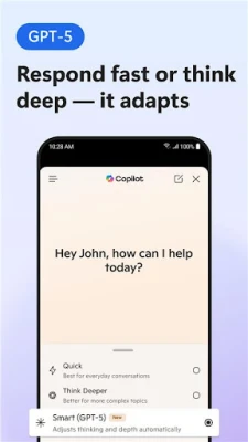 • Talk to Copilot with your voice to brainstorm ideas, tackle complex questions, or even write stories and scripts — hands-free.