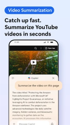 • Use AI-powered Copilot to instantly summarize web pages, PDFs, and videos — providing clear, cited insights in seconds.