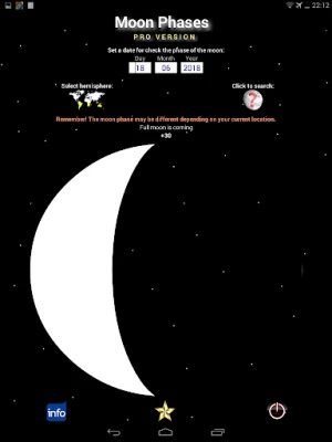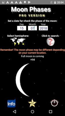 Set a date (day, month, year) and then find out what the phase of the moon will be.