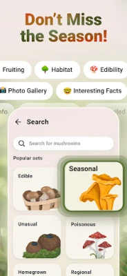 The search function in Mushroom ID: Fungi Identification allows you to quickly find important and necessary information about any mushroom by simply typing its name. Enjoy seamless access to a wealth of mushroom knowledge at your fingertips.