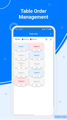 ● Table Management: Add, edit, or delete ongoing tables in your restaurant with a table management feature.