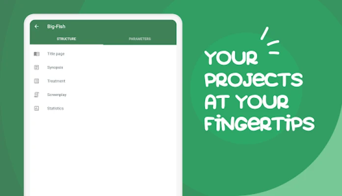 Story Architect allows you to create an unlimited number of projects, even in the free version. You can work with different formats in a single app — from scripts and comics to plays and books. All materials can be linked to a shared database of characters and locations.