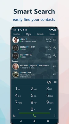 - Fast T9 search in your recent calls and contacts